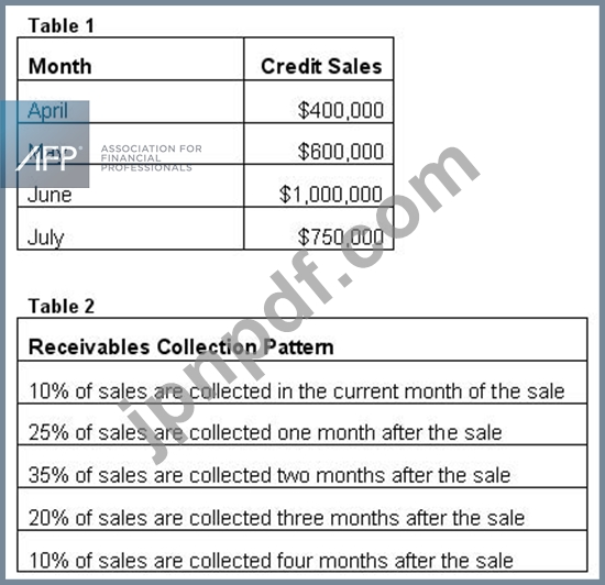 会社の売掛金回収パターンは表2のとおりです。3月31日時点の売掛金が0ドルの場合、7月末の売掛金残高はいくらになるでしょうか。四半期は90日間と仮定します。