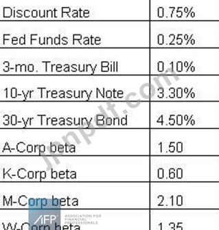 米国株式市場の過去の収益率は8%です。投資ポートフォリオは、A社株40%、K社株30%、M社株10%、W社株20%の株式投資で構成されています。