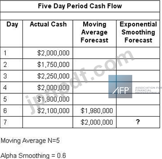 QRTコーポレーションは、キャッシュフロー予測モデルに指数平滑法を採用しています。移動平均予測の計算には5日間が使用されます。