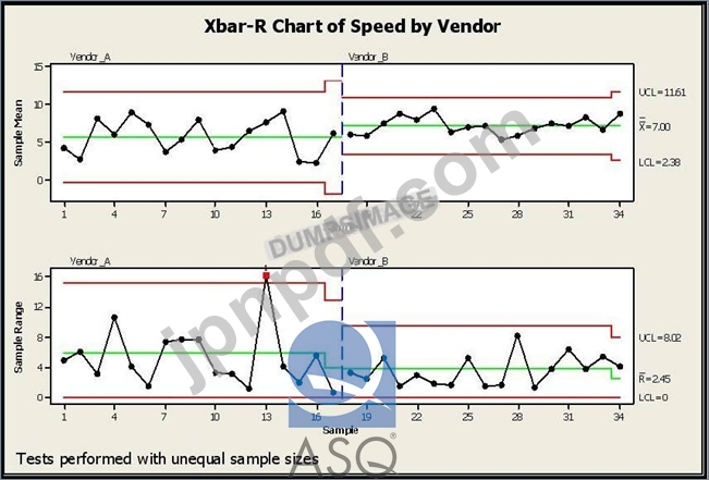 SPCチャートは、様々なビジネス環境や意思決定環境で広く活用されています。この例では、納品スピードに基づいてベンダーを選定しています。ベンダーからの納品リードタイムに関して、ニーズに合ったベンダーを選定する上で、どの結論が役立ちますか?(注:正解は4つあります。)