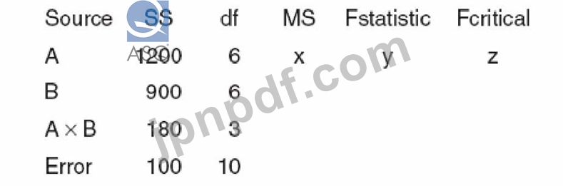偏分散分析表を以下に示します。= 0.05 を使用します。x、y、z の値は以下のとおりです。