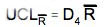 ある工程から得られたデータセットには、サンプルあたり8つの測定値があり、サンプル数は50個です。50個のサンプル平均の平均は12.62です。50個の範囲の平均は0.18です。R管理図の管理限界を求めます。