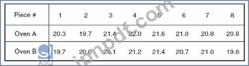 以下のデータが収集されます: データはオーブンの平均スコアが異なることを示していますか? 差は正規分布していると仮定します。