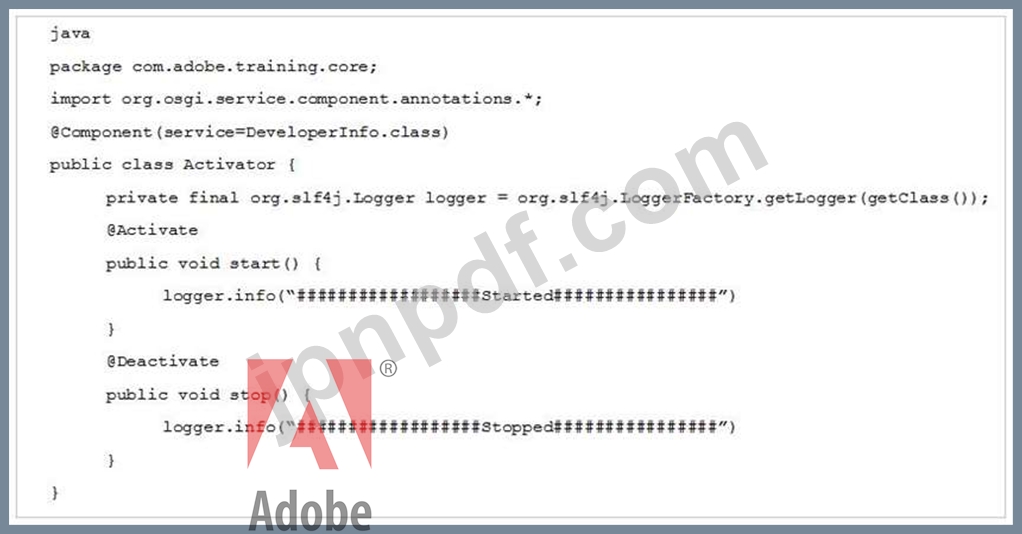 OSGiバンドルでは、Activator.javaはサービスDevelopInfo.javaDeveloperInfo.javaを介して登録されます。