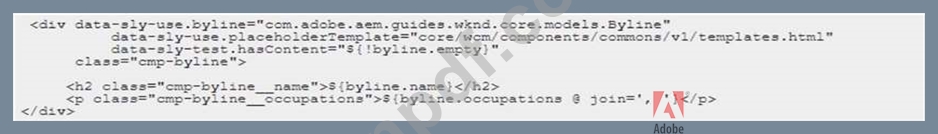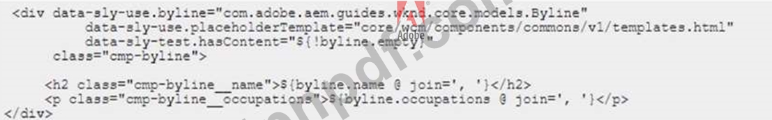 次のコードは、インターフェイス com.adobe.aem.guides.wknd.core.models.Byline から継承されたスリング モデルに含まれています。