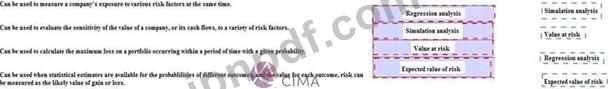 下のボックスに示されている説明を、それが最もよく説明しているリスクエクスポージャーを定量化する方法と一致させてください。