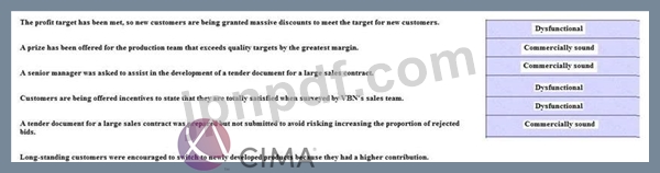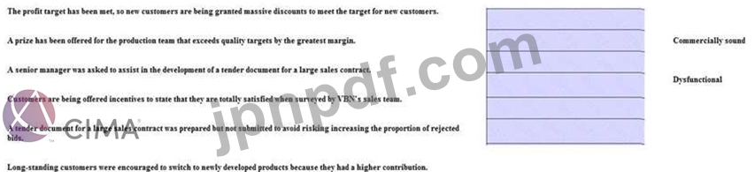 部門の経営陣が下した以下の決定のそれぞれを、商業的に健全または機能不全のいずれかに分類します。
