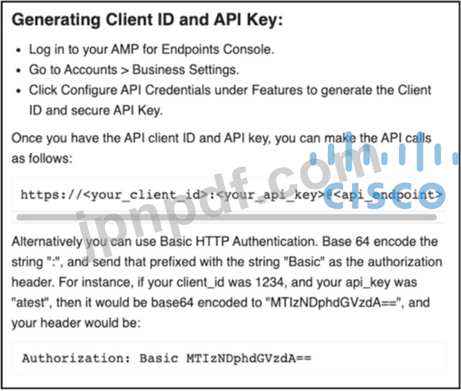 ドキュメントでは、AMP APIのクレデンシャルを使用する方法の概要を説明しています。基本認証を使用してAPI呼び出しを正常に実行するスクリプトはどれですか?
