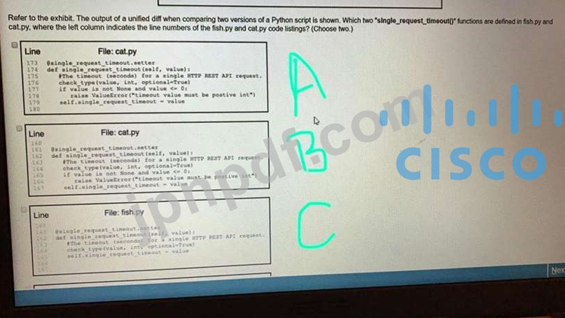 Pythonスクリプトの2つのバージョンを比較したときの統一された差分の出力が表示されます。どちらの2つ