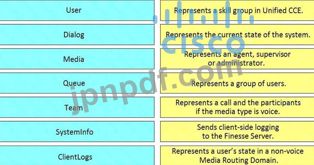 左側のFinesseAPIの要素を、右側の機能の説明にドラッグアンドドロップします。