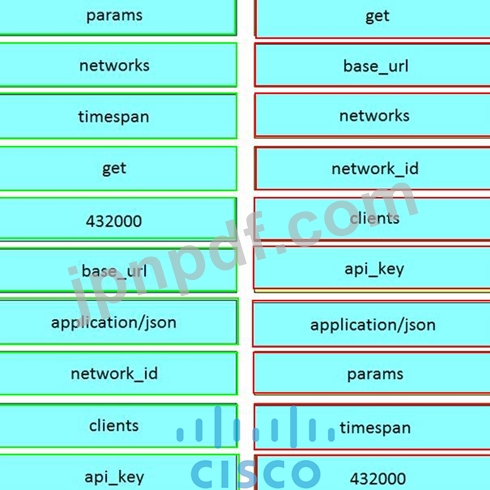 左側のコードから右側のアイテム番号にコードをドラッグアンドドロップして、Merakiコードを完成させ、このネットワークを使用したクライアントのリストを取得します。