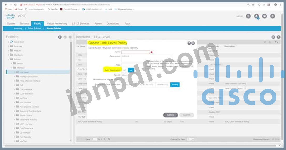 * 新しく接続されたデバイスがリーフ スイッチとのリンク速度を自動ネゴシエートできるようにします。 これらの要件を達成するには、どの 2 つの ACI ポリシーを設定する必要がありますか? (2つお選びください。)
