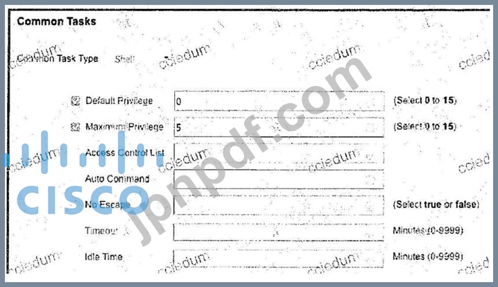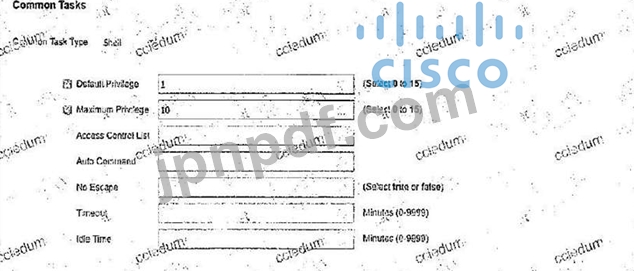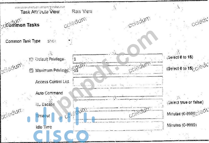 管理者が新しいTACACS販売を作成しています。このプロファイルが割り当てられるユーザは、ユーザEXECモードと同等の初期アクセス権限と、特権EXECモードの最大権限レベルを持っている必要があります。これはどのように構成されていますか?