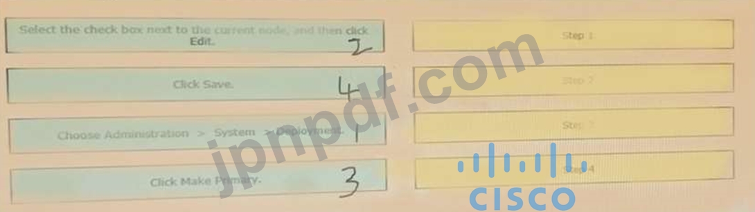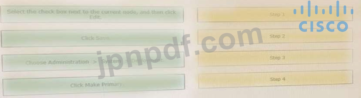 手順をドラッグして、CiscoISEノードをプライマリ管理ノードとして左から夜の正しい順序に設定します。