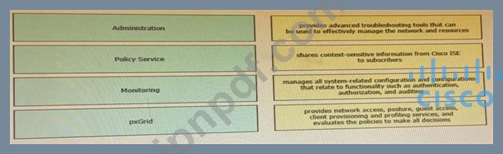 CiscoISEノードタイプを左側から右側の適切な目的にドラッグします。