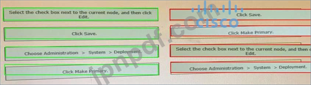 手順をドラッグして、CiscoISEノードをプライマリ管理ノードとして左から夜の正しい順序に設定します。