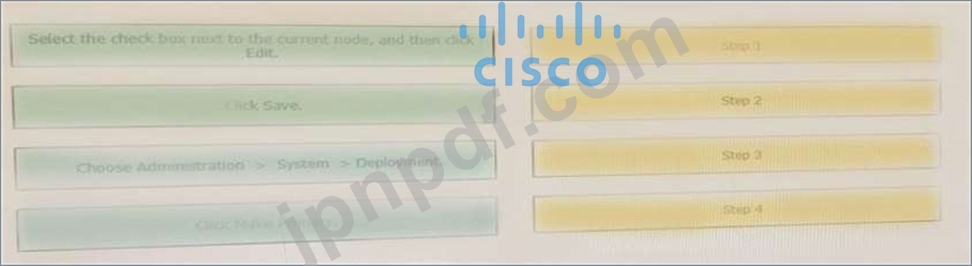 手順をドラッグして、CiscoISEノードをプライマリ管理ノードとして左から夜の正しい順序に設定します。