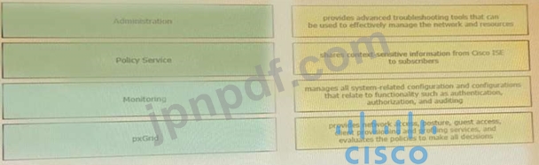 Cisco ISE ノード タイプを左側から右側の適切な目的にドラッグします。