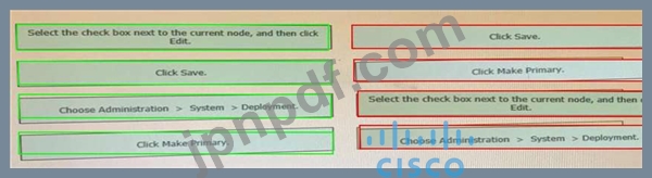Cisco ISE ノードをプライマリ管理ノードとして設定する手順を、左から夜に正しい順序にドラッグします。