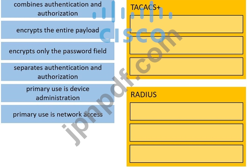 左側の説明を、システム認証、認証、アカウンティングを実行するために使用される右側のプロトコルにドラッグ アンド ドロップします。