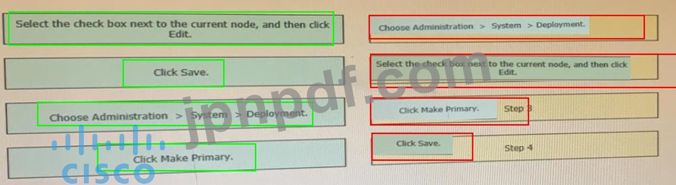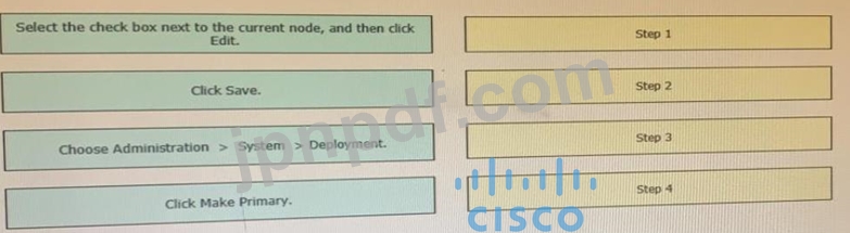夜間に、Cisco ISE ノードをプライマリ管理ノードとして設定する手順を左から正しい順序にドラッグします。