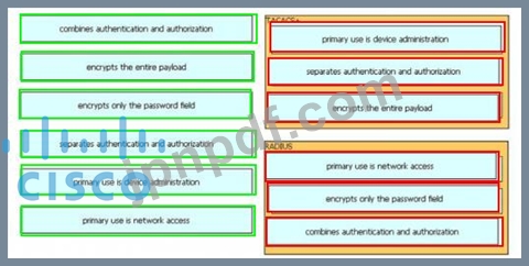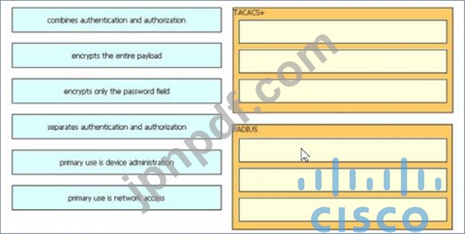 左側の説明を、システム認証、認証、アカウンティングを実行するために使用される右側のプロトコルにドラッグ アンド ドロップします。