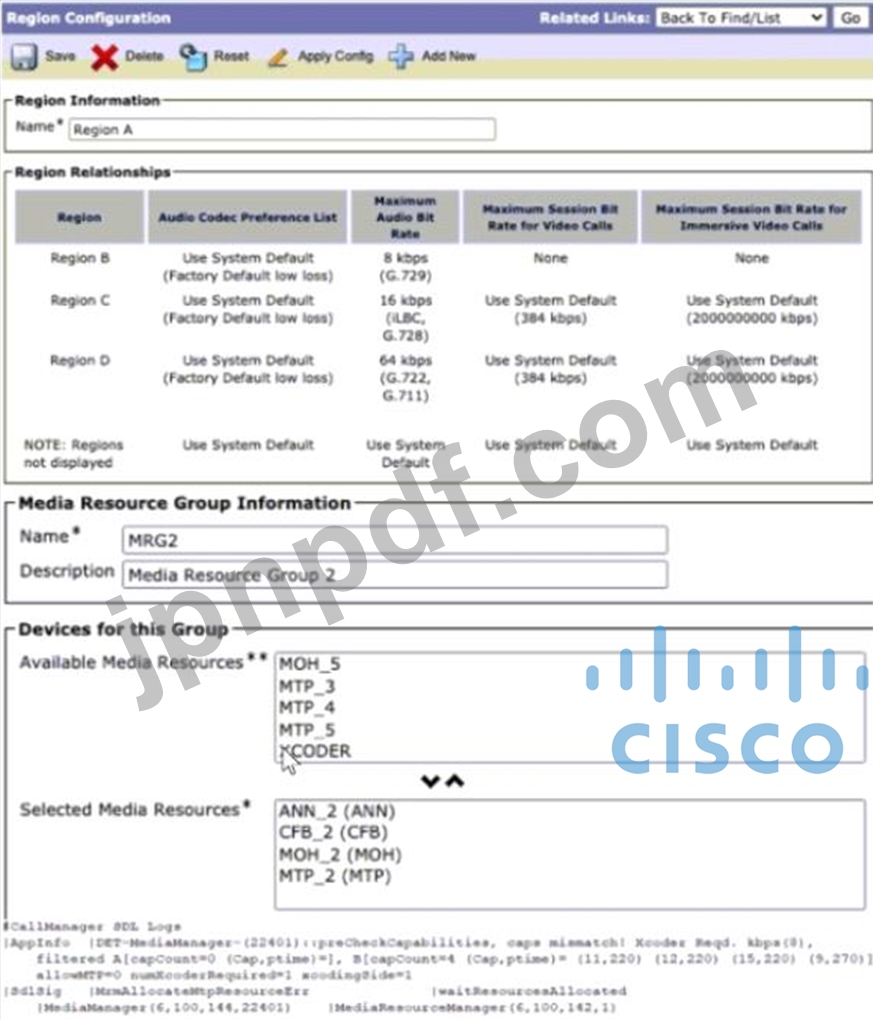 リージョンは、使用可能な回線帯域幅に基づいて、すべての主要なブランチに対して構成されています。リージョンAエンドポイントからリージョンBエンドポイントへの一部のコールが接続に失敗しています。この問題はどのように解決されますか?