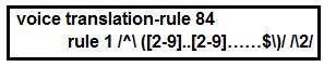 E.164形式。Cisco Unified Border Elementには、プロバイダーにコールを送信するように設定されたアウトバウンドダイヤルピアがあります。ダイヤルピアには、正しい方向に適用された音声変換プロファイルがありますが、展示に示されている誤った音声変換ルールが適用されています。プロバイダーが期待する形式でDNISを変更したルールはどれですか?