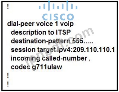 エンジニアは、エンタープライズVoIPネットワークをSIPテレフォニープロバイダーに接続するようにCisco UnifiedBorderElementを設定します。通話はどちらの方向にも機能していません。この問題を解決するには、ダイヤルピア1で何を構成する必要がありますか?
