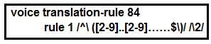 展示を参照してください。ユーザは、Cisco UnifiedCommunicationsManagerに登録されている電話機からのアウトバウンドPSTNコールが完了していないと報告しています。北米のローカルサービスプロバイダーは、10桁の形式で電話を受ける必要があります。Cisco Unified CMは、グローバル化されたE.164形式でCisco UnifiedBorderElementルータにコールを送信します。Cisco Unified Border Elementには、プロバイダーにコールを送信するように設定されたアウトバウンドダイヤルピアがあります。ダイヤルピアには、正しい方向に適用された音声変換プロファイルがありますが、展示に示されている誤った音声変換ルールが適用されています。プロバイダーが期待する形式でDNISを変更したルールはどれですか?