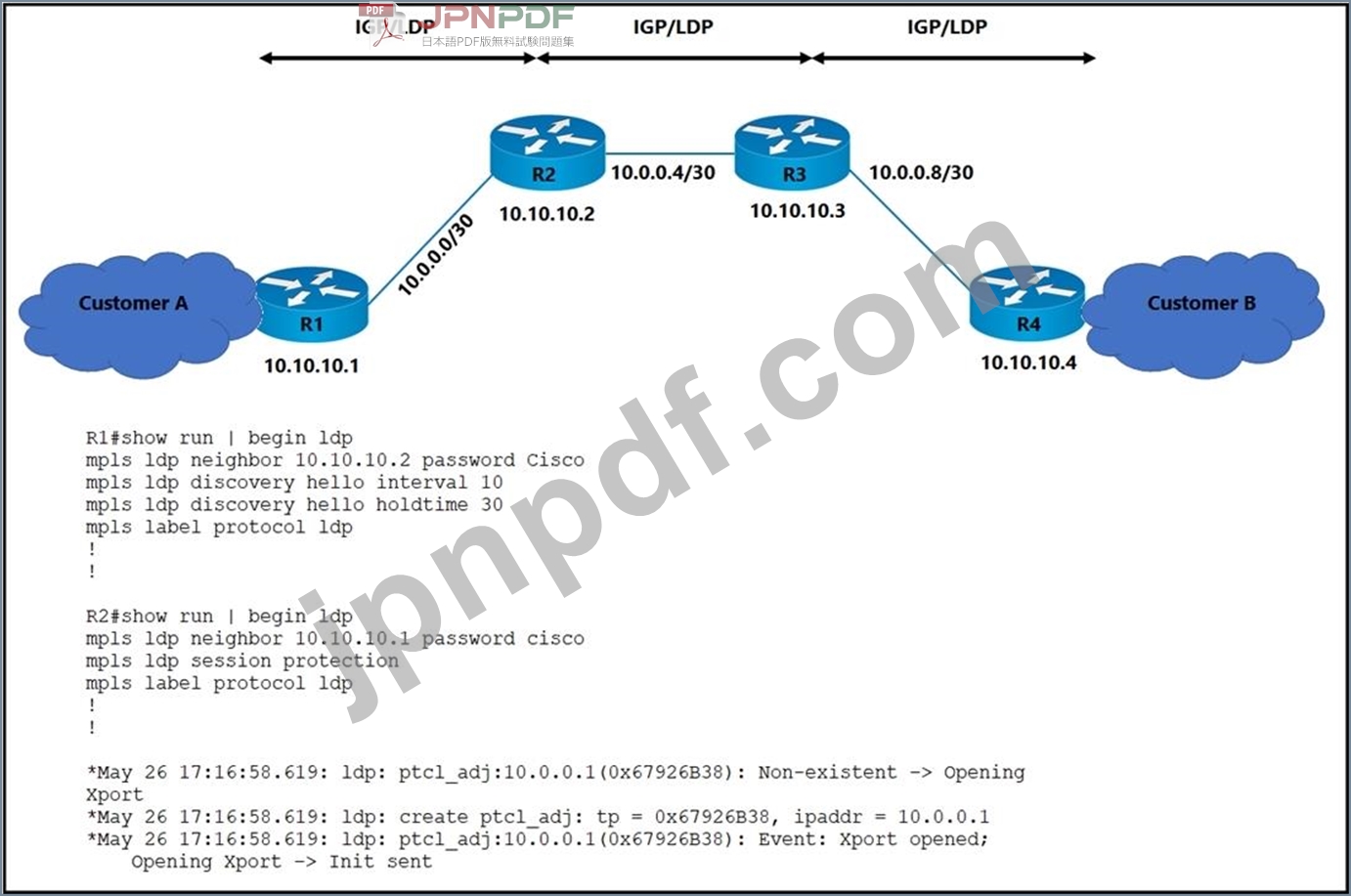 Refer to the exhibit. The operations team is implementing an LDP-based configuration in the service provider core network with these requirements: