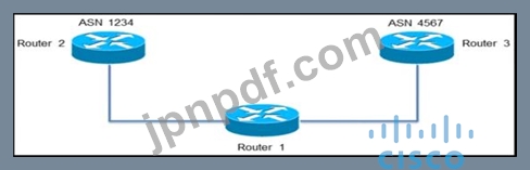 エンジニアは、示されているように、2つのASNのルータR1でパス選択を設定しています。すべてのアウトバウンドトラフィックがR1とR3の間のリンクを利用してASN4567に到達するために、エンジニアがルータ1で実行する必要のある追加のタスクはどれですか。