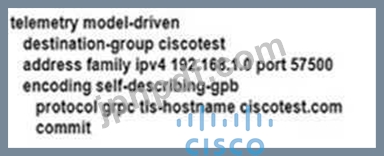 エンジニアは、いくつかの新しいデバイスでgRPCを使用してダイヤルアウトテレメトリストリームを有効にする構成スクリプトを開発しています。デバイスでTLSを無効にする必要があります。