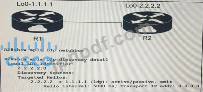 LDP プロトコルを実装しているときに、エンジニアは、直接接続された 2 つのルーター間で問題が発生し、1.1.1.1 の LDP ネイバーが存在しないことに気付きました。