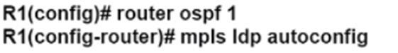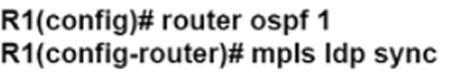 ネットワーク エンジニアは、ルーター R1 で MPLS LDP 同期を構成しています。R1 が OSPF プロセス 1 に同期するために、エンジニアが R1 に適用する必要がある追加の構成はどれですか?