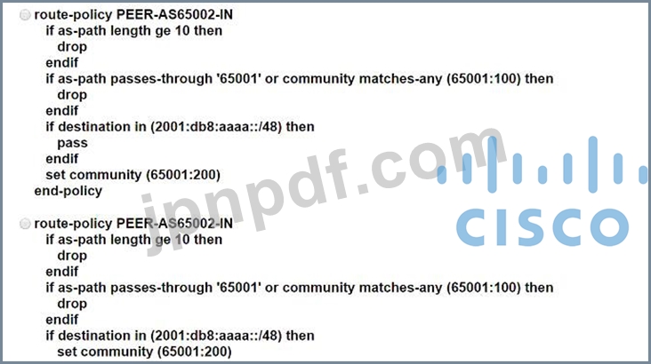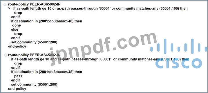 * ASN 65001 に受け入れられたルートには、65001:200 のコミュニティ値を割り当てる必要があります。
