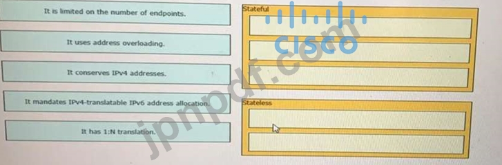 NAT64 の説明を左側から右側の正しい NAT64 タイプにドラッグ アンド ドロップします。