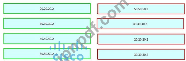 エンジニアは、どのパスが最適か、2 番目に良いか、3 番目に良いか、4 番目に良いかを判断したいと考えています。左側のピア アドレスを、右側の対応する BGP 最適パス選択順序にドラッグ アンド ドロップします。