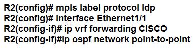 展示を参照してください。エンジニアは、2 つのルーターを構成して、ルーター間の MPLS LDP セッションをサポートしています。R1 の設定が完了し、図のように R2 で作業が開始されました。