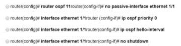 私の出品物を参照してください。エンジニアは、OSPF 用のルーターの構成を開始しました。ルーターがピアとの OSPF ネイバー関係を確立するために、インターフェイス構成を変更せずに、エンジニアがルーターで実行する必要がある構成はどれですか?