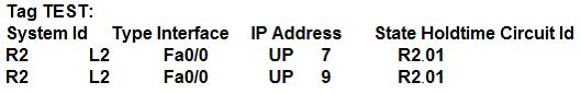 展示を参照してください。R1 では、show isis neighbors コマンドはどの出力を生成しますか?
