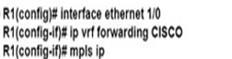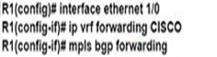 ネットワーク エンジニアは ASBR ルータ R1 に VRF を展開しています。インターフェイスは、MPLS VPN Inter-AS オプション AB ネットワーク経由で接続できる必要があります。このタスクを達成するには、エンジニアはルータにどの設定を適用する必要がありますか?