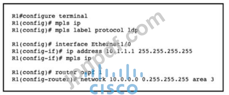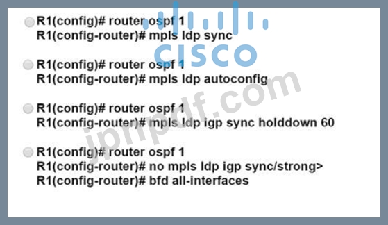 ネットワーク エンジニアは、ルータ R1 で MPLSLDP 同期を設定しています。OSPF プロセス 1 と同期するには、エンジニアが R1 に適用する必要がある追加構成はどれですか?