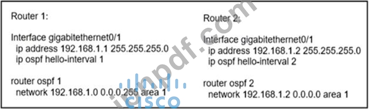 展示を参照してください。Router 1 と Router 2 の間の OSPF ネイバー関係を再確立するものは何ですか?