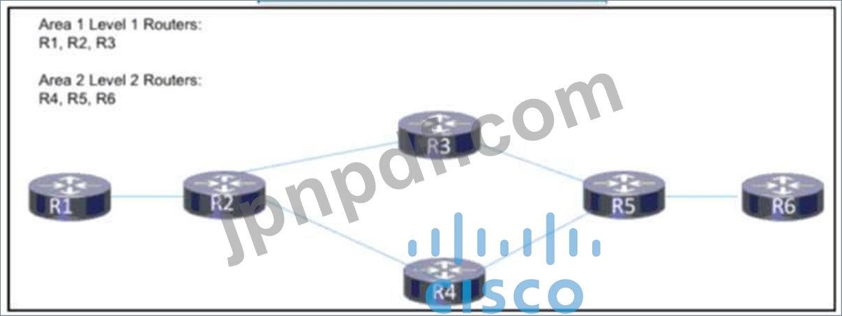 資料を参照してください。 ネットワーク エンジニアは、ネットワークの異なるセグメント間のトラフィックを分離するために、このネットワークに IS-IS エリア 1 とエリア 2 を実装中です。 2 つの新しいエリアのホストは、相互に通信する能力を維持する必要があります。両方向。