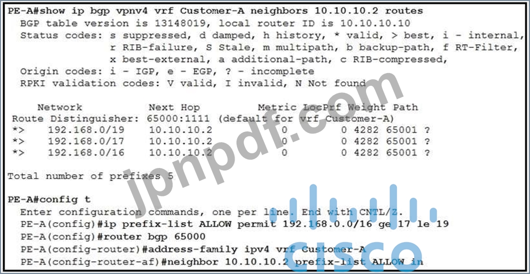 展示を参照してください。プレフィックス リストがネイバーに追加された場合に起こる 3 つの結果はどれですか? (3つお選びください。)