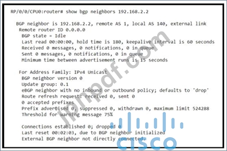show/ コマンドの出力に基づいて、BGP セッションが確立された後に正しい結果はどれですか?