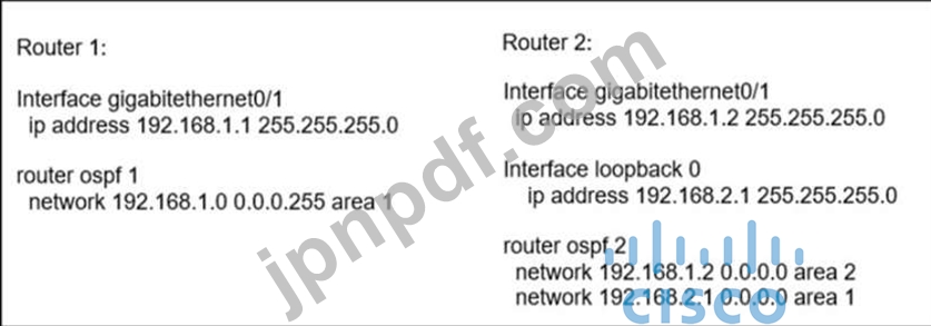 ルーター 1 にはルーター 2 のループバック 0 のルートがありません。問題を解決するにはエンジニアは何を変更する必要がありますか?
