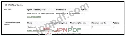 Which condition or conditions will cause the "All Databases & cloud services" SD-WAN traffic to be routed via a VPN2 tunnel on WAN2?