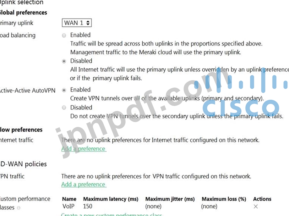 VPNトラフィックがVoIPカスタムパフォーマンスクラスで設定された遅延しきい値を超えているかどうかを判断するために、MXセキュリティアプライアンスは何を送信しますか?